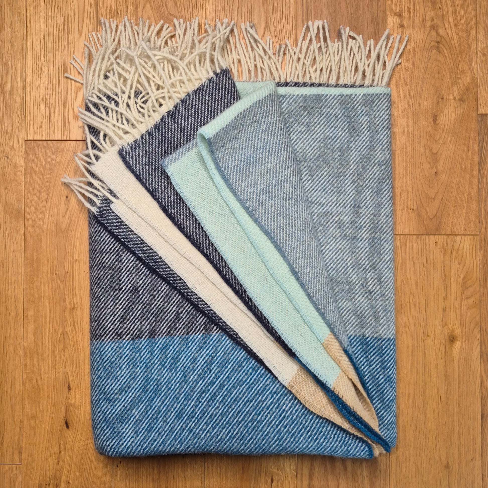 Pure British Wool Blanket Throw | Coastline Block Stripe