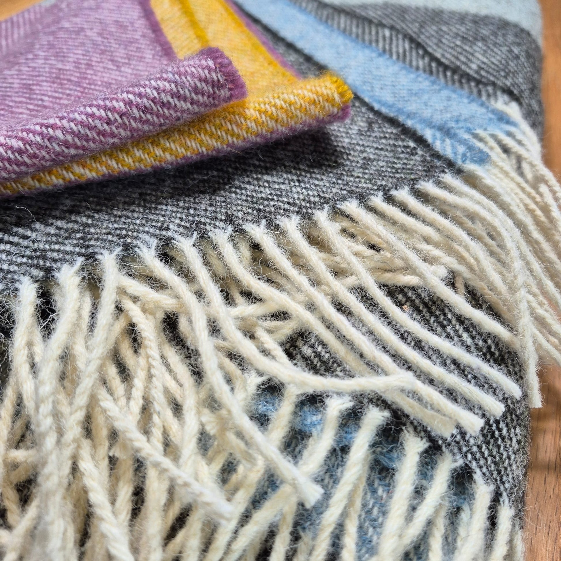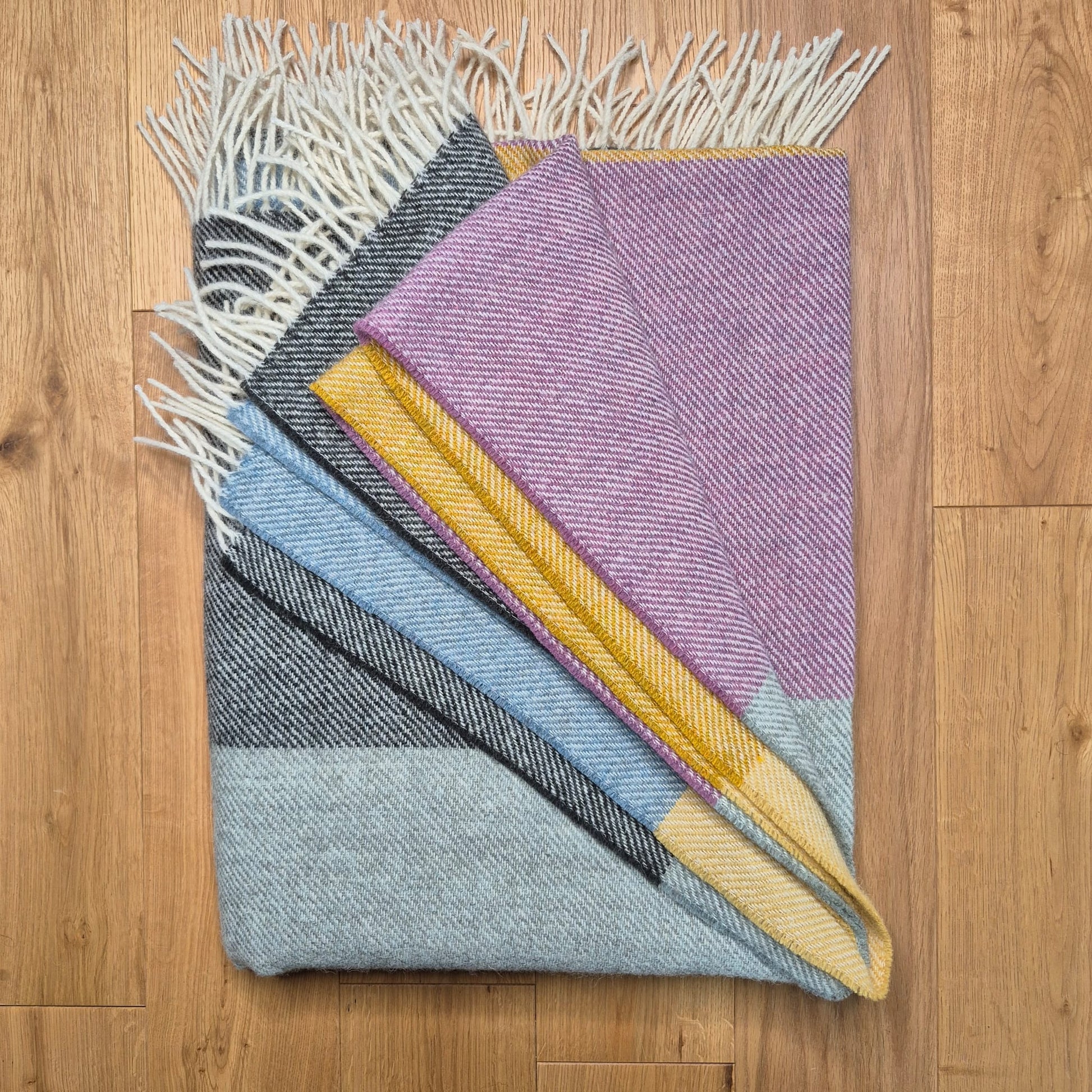 Pure British Wool Blanket Throw | Dartmoor Spring Block Stripe