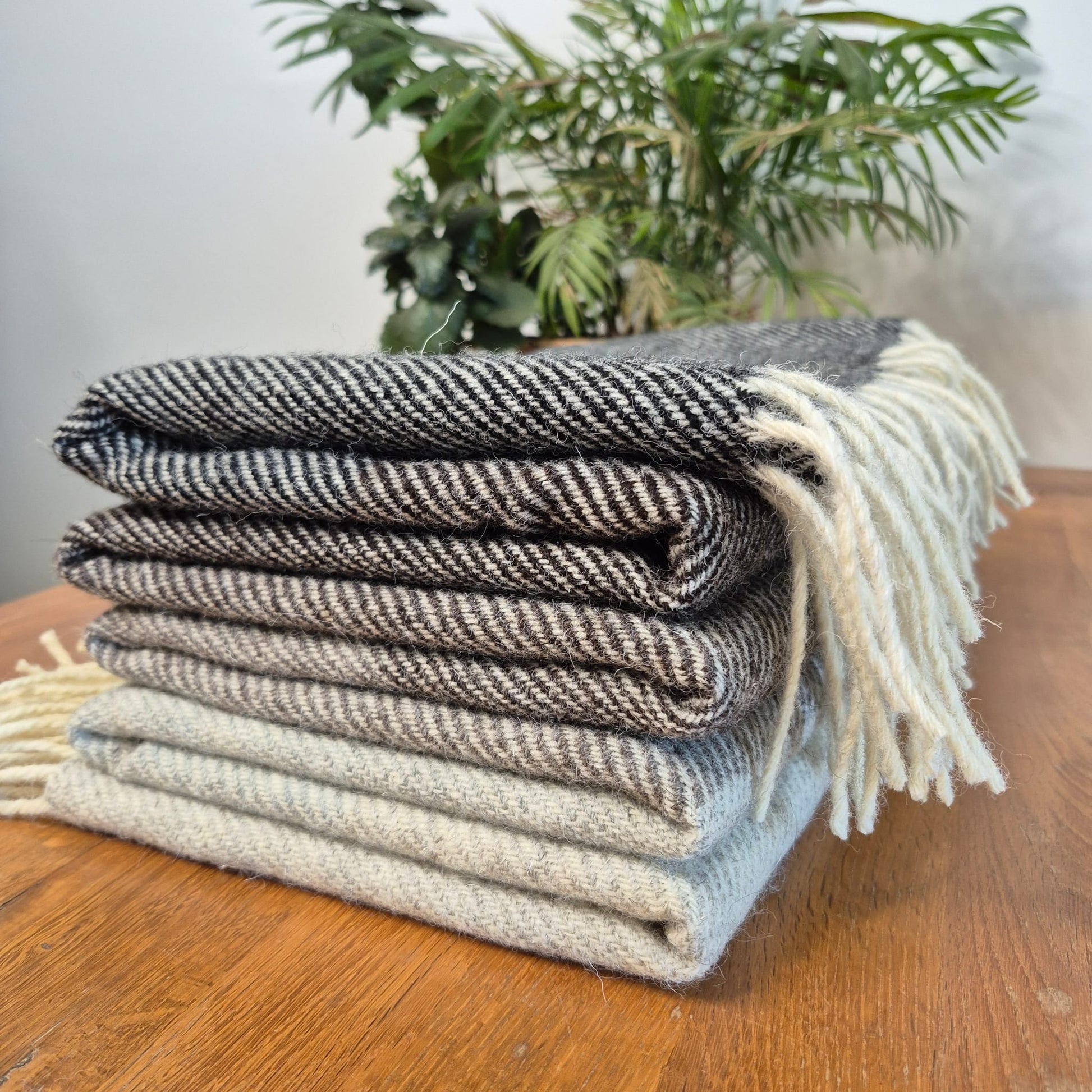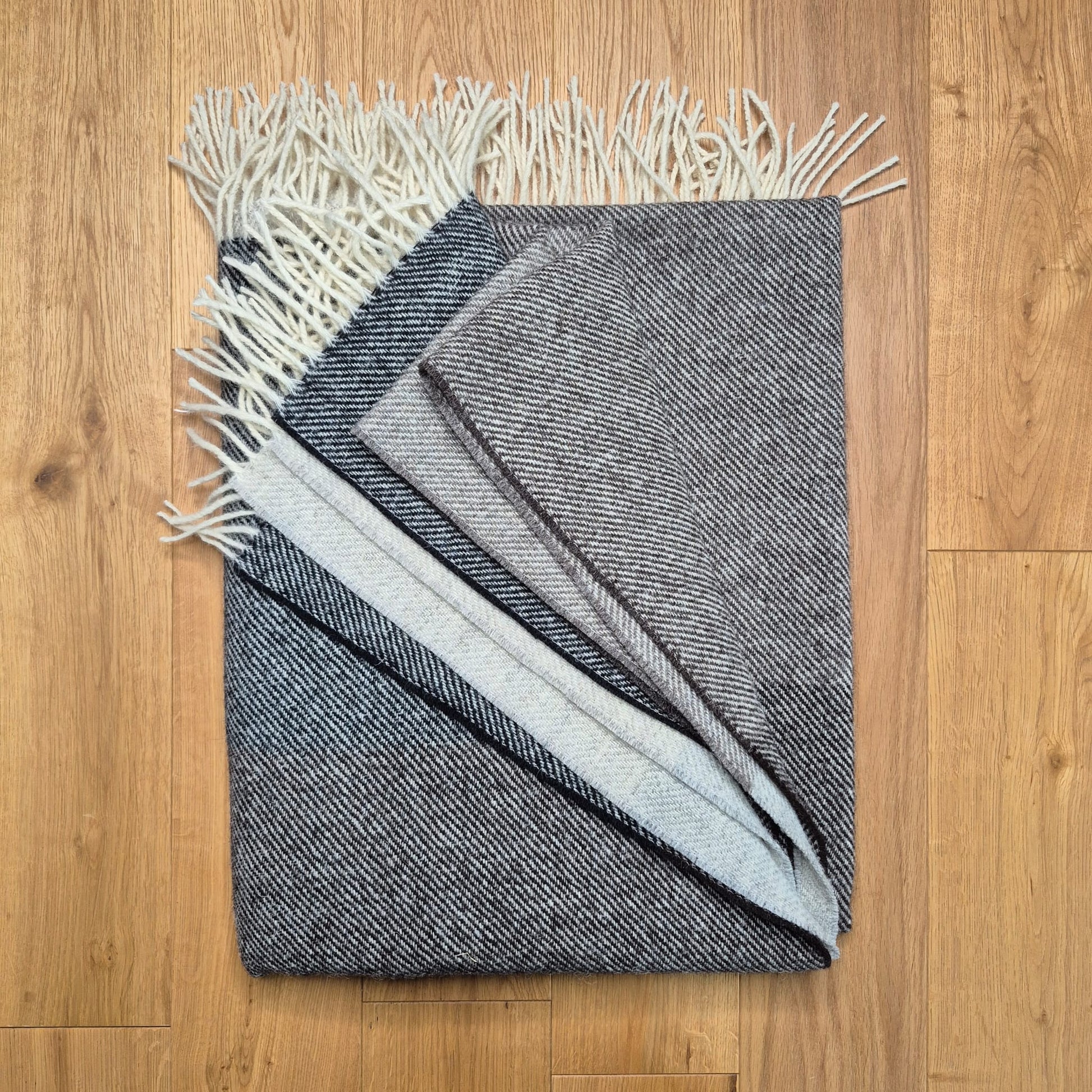 Pure British Wool Blanket Throw | Herdwick Grey Block Stripe