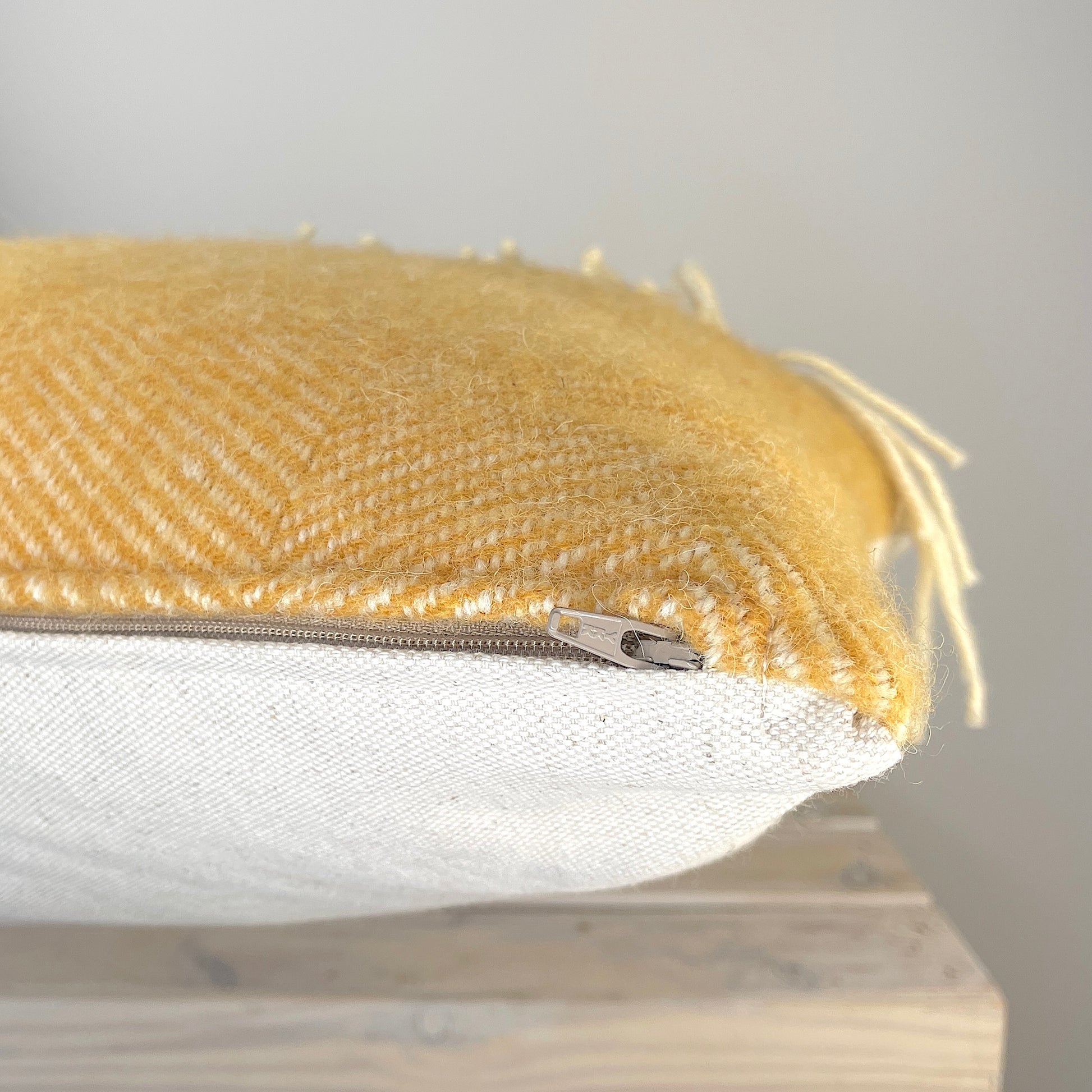 The wool comes directly from our own Devon Closewool sheep raised on our Salcombe farm. This direct connection from farm to workshop (just 7 miles away) minimises the carbon footprint and maintains truly local production. The natural linen backing adds a complementary texture and ensures the cushion integrates with various interior styles.