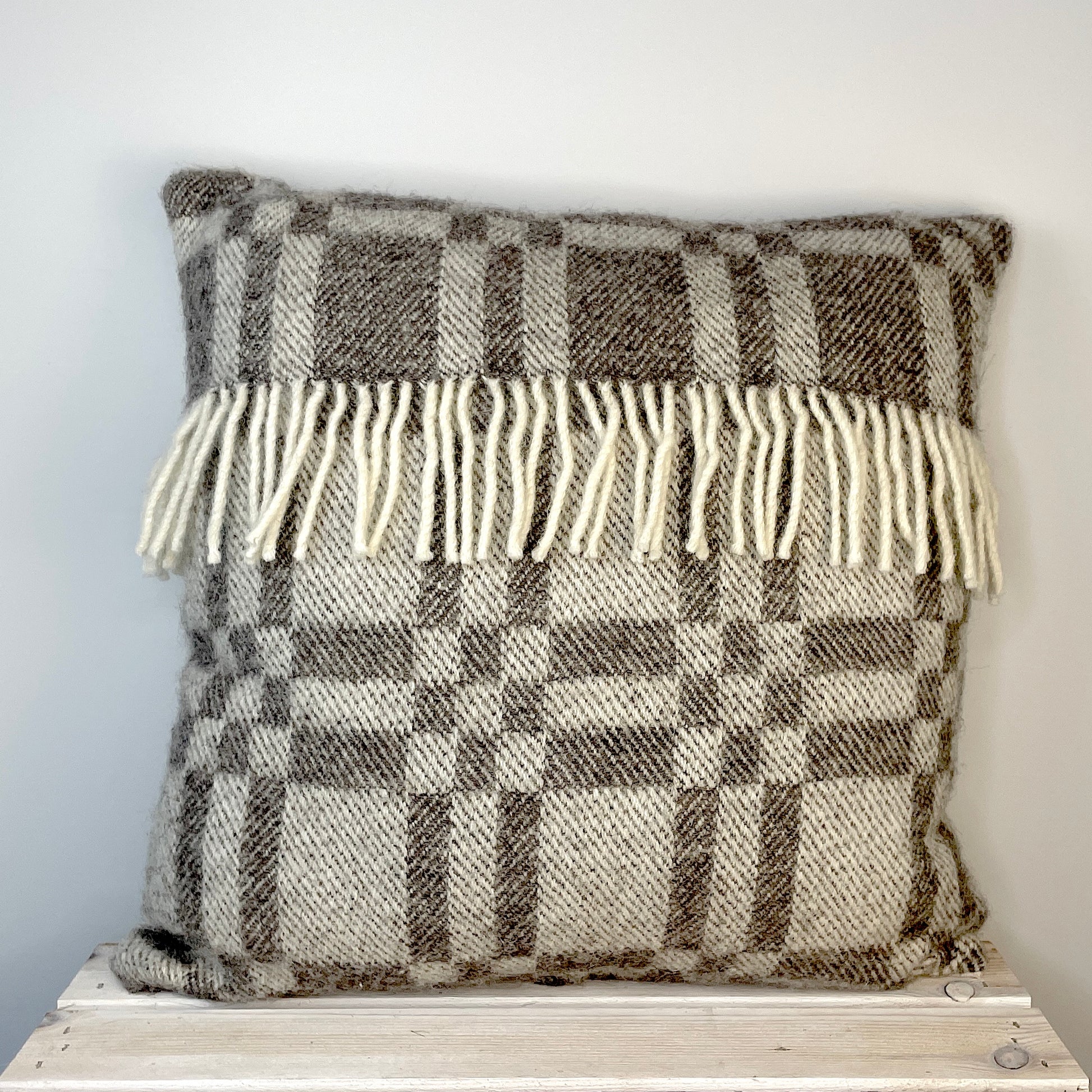 Pure Wool Cushion | Grey Inverse Geometric w/Fringe