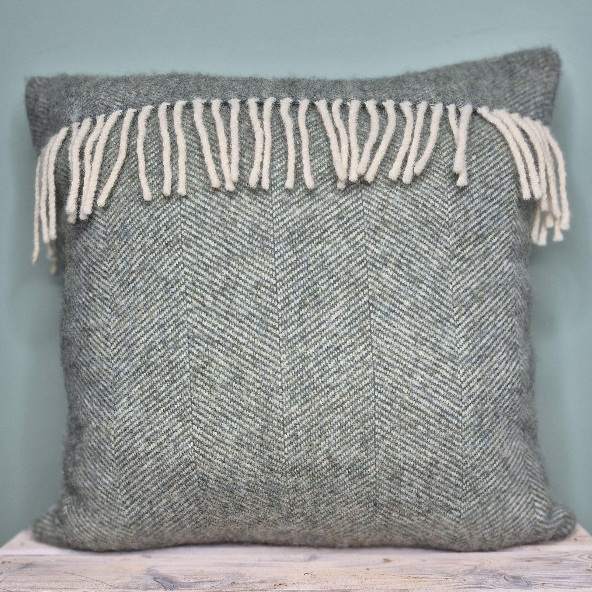 Pure Wool Cushion | Moss Green w/Fringe