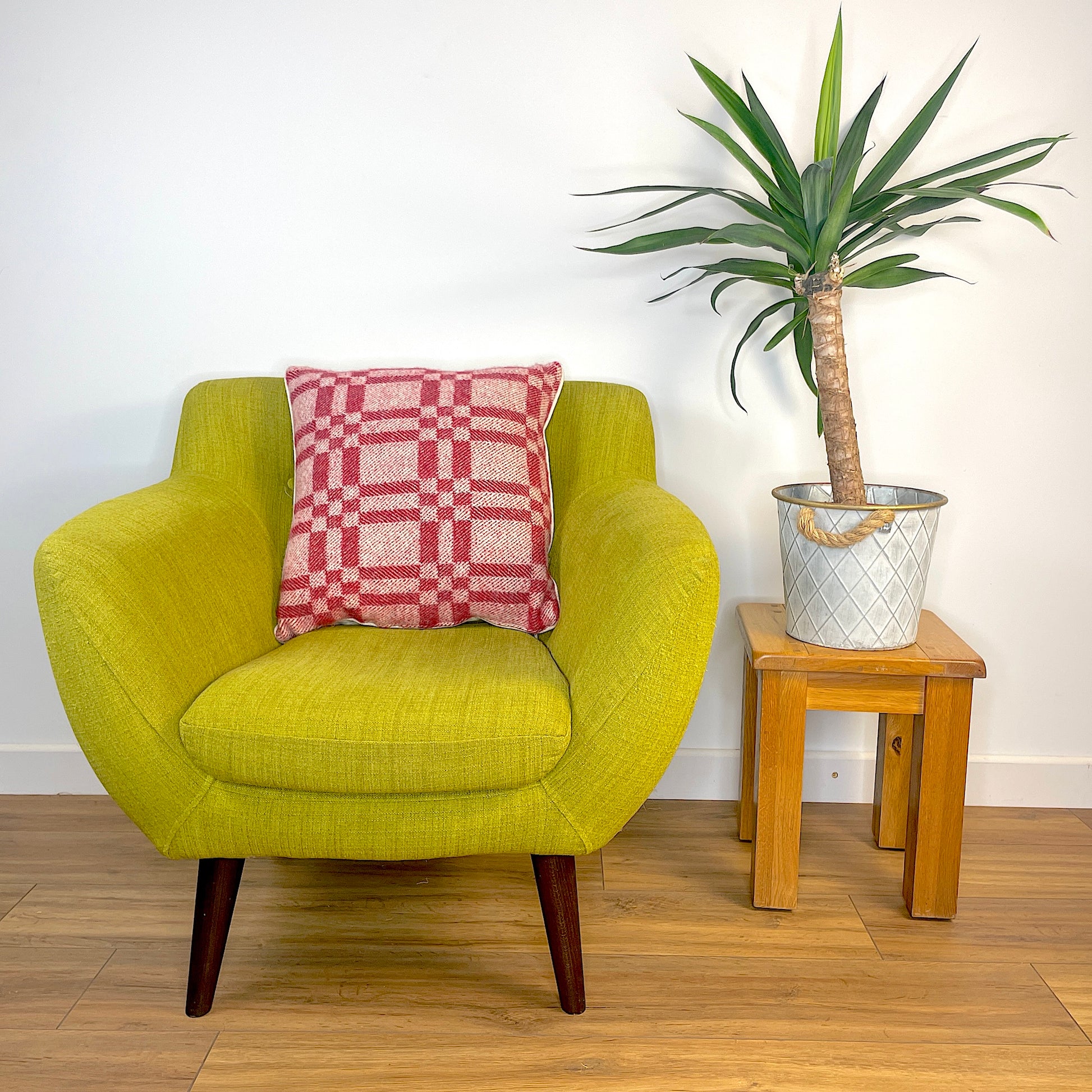 Pure Wool Cushion | Red Geometric Squares w/Piped Edging