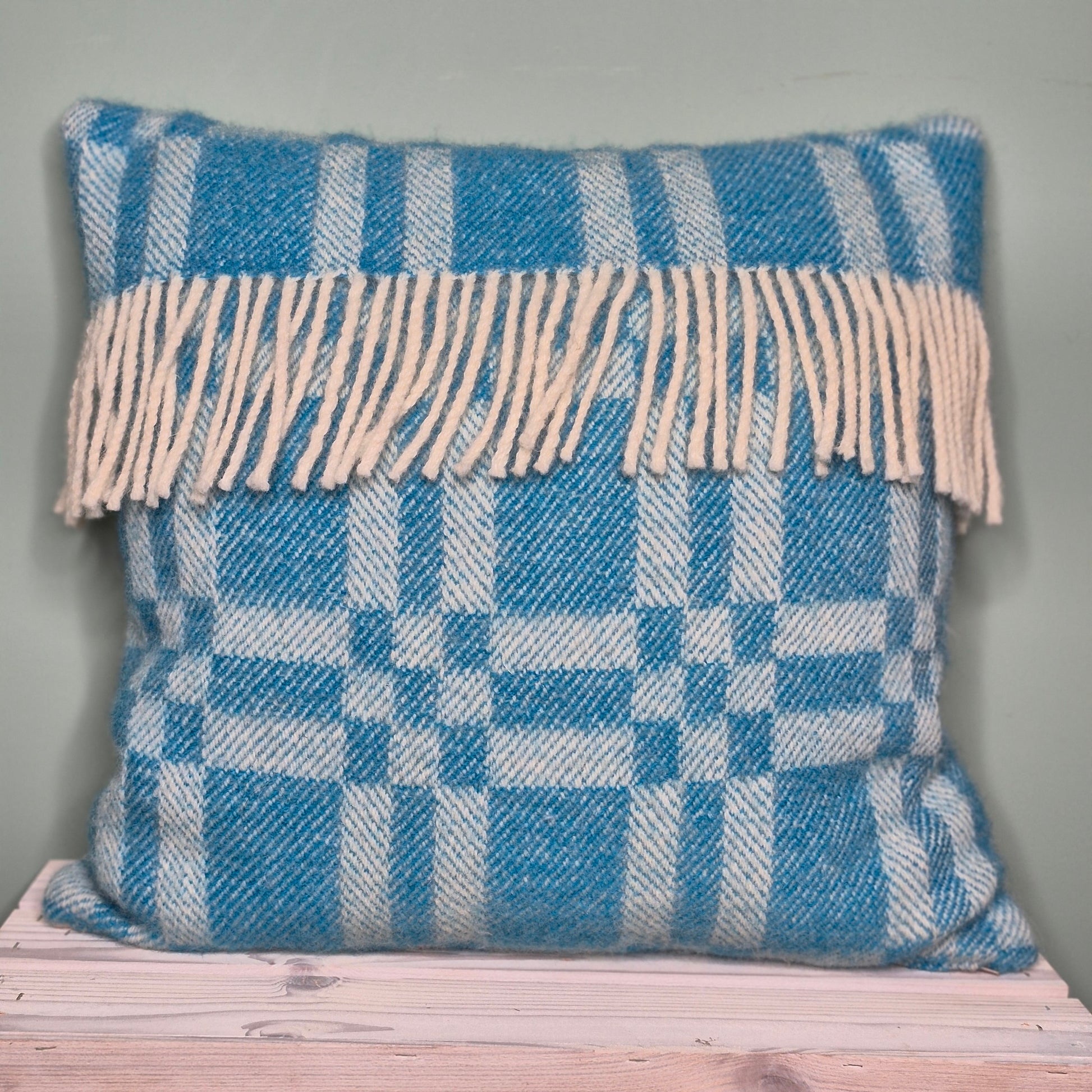 Pure Wool Cushion | Sky Blue w/Fringe
