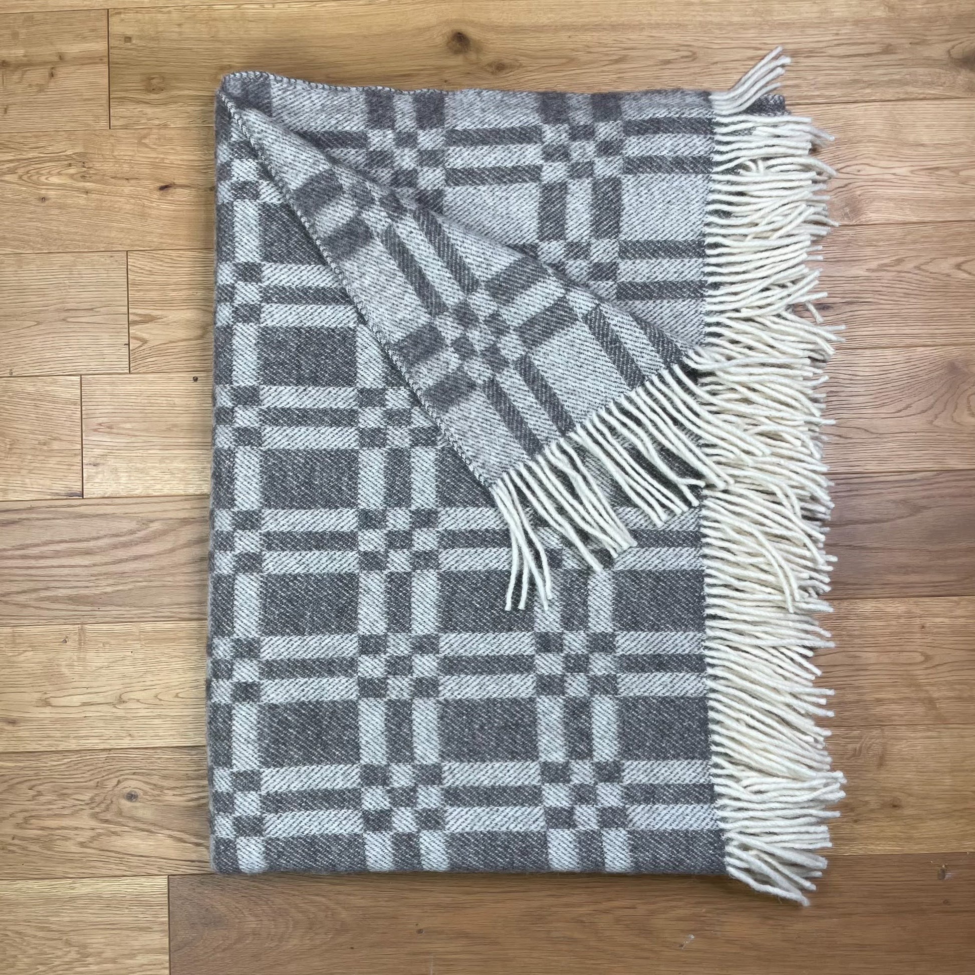 Pure Wool Herringbone Throw Blanket (Natural Grey, Size: 210x151cm)