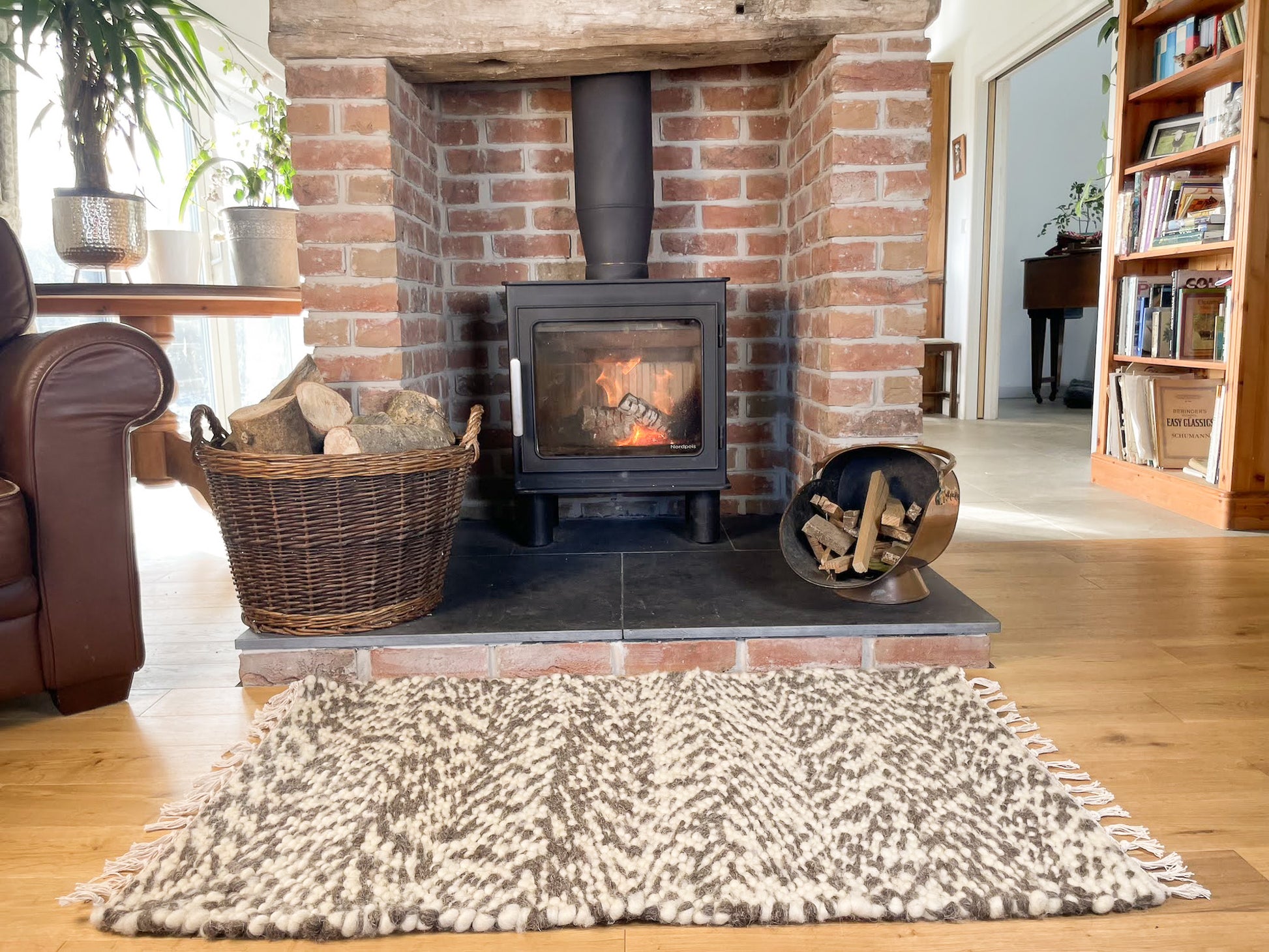 These handwoven pure wool rugs bring authentic Devonian craftsmanship into your home. Handwoven on a traditional floor loom in North Dartmoor using wool from our own Devon Closewool and Herdwick sheep, they blend rustic British heritage with a subtle nod to Scandinavian design. The result is a piece that feels both timeless and contemporary, making it a perfect accent for hearths, reading nooks, and cherished spaces.