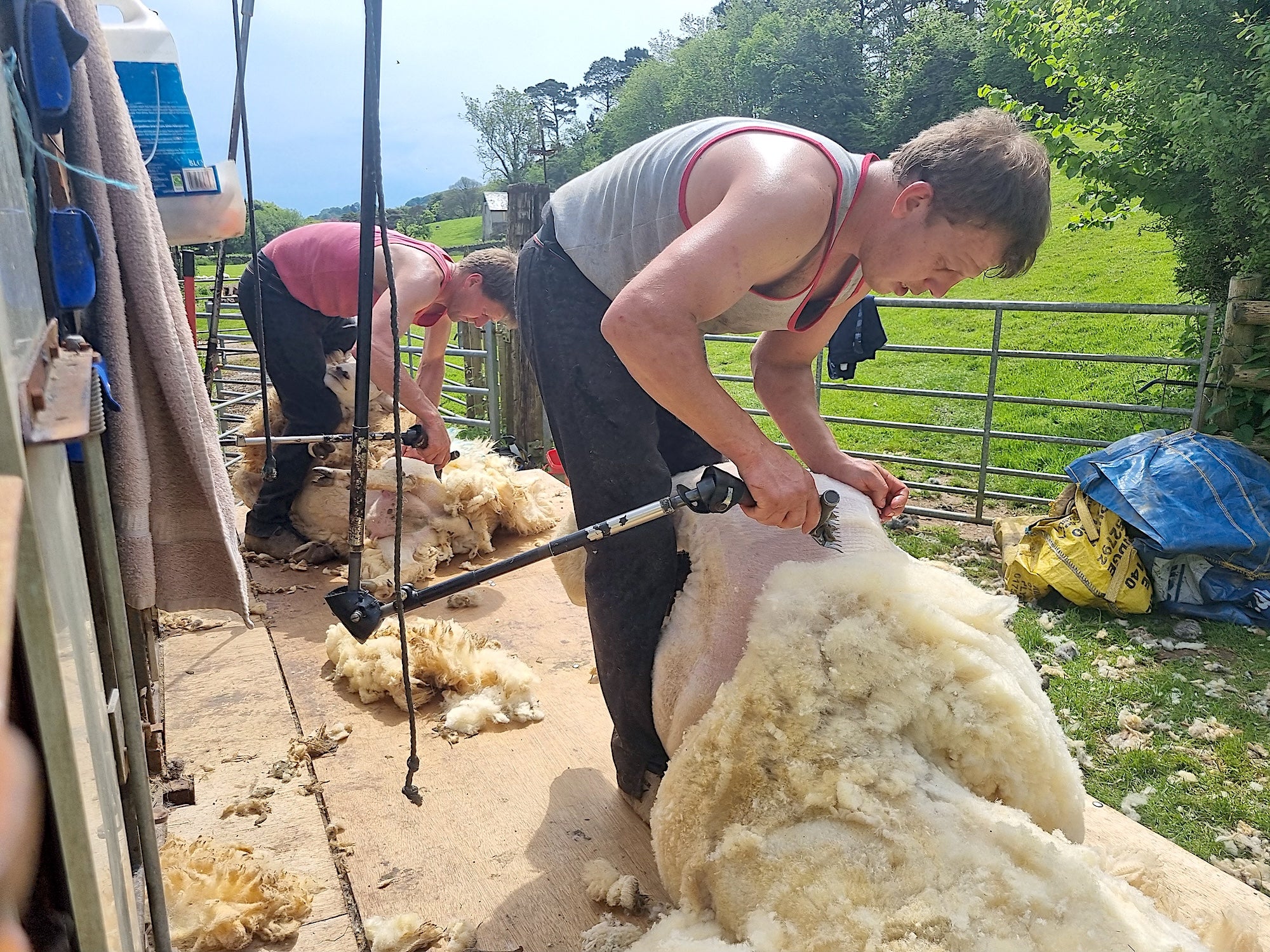 We keep the entire process in Devon. We shear the sheep and prepare the wool through washing (without carding it into rovings), which is then woven on a peg loom by a specialist weaver in North Dartmoor. This direct method lets us maintain the wool's natural, rustic qualities through each step.